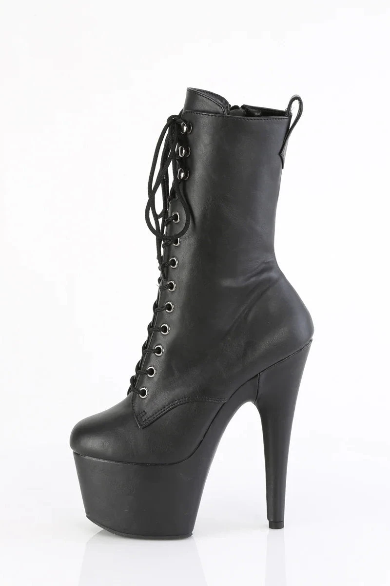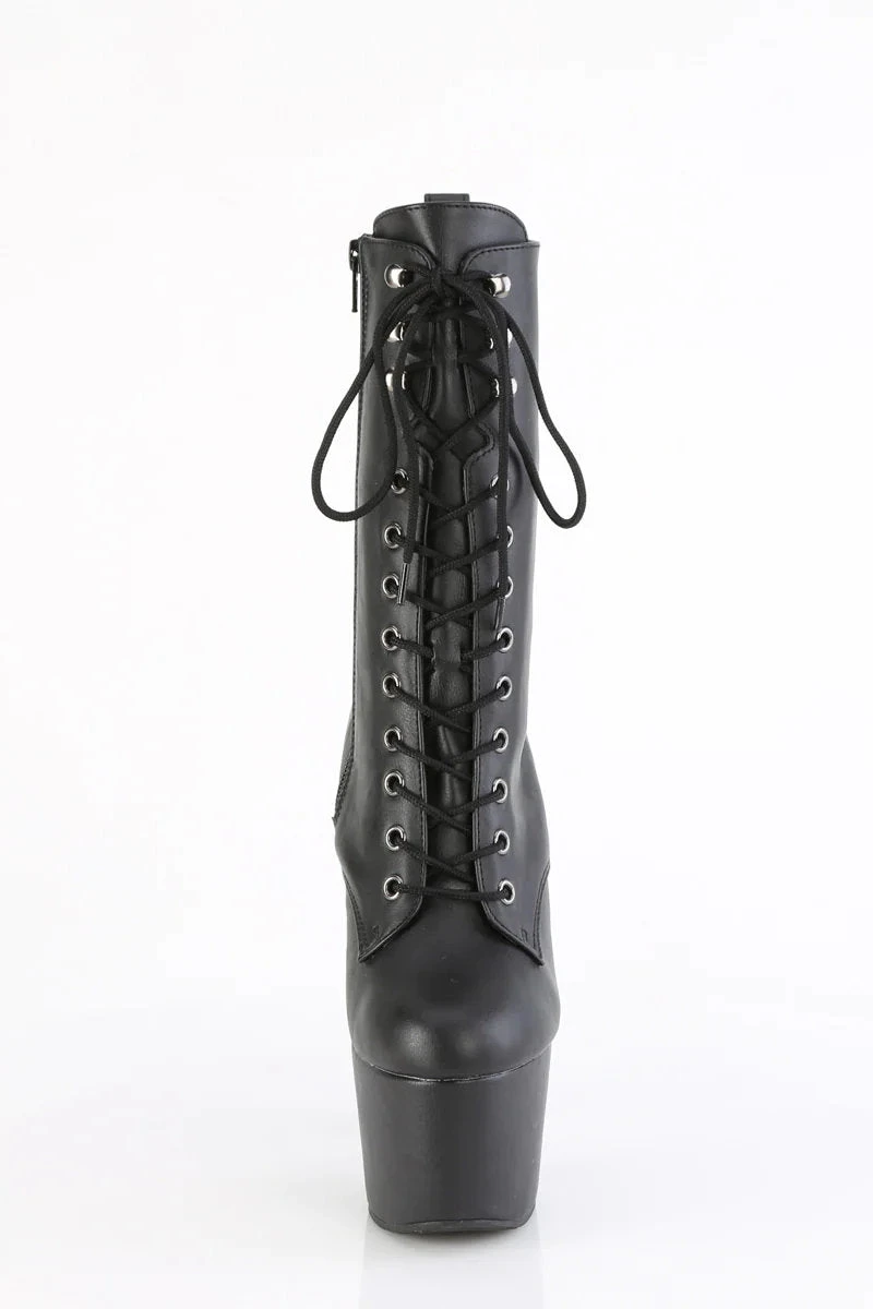 - Matt Black Platform | Lace-Up Front Ankle Boot | Inside Zip Closure