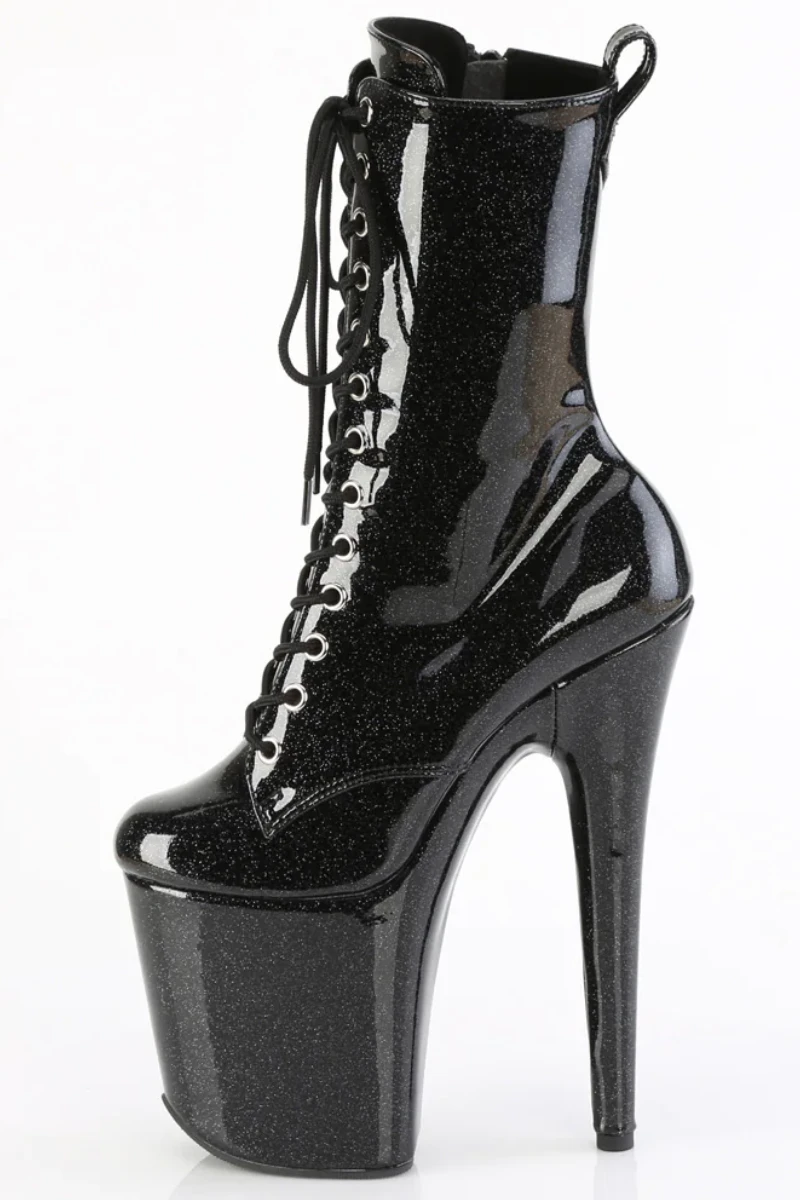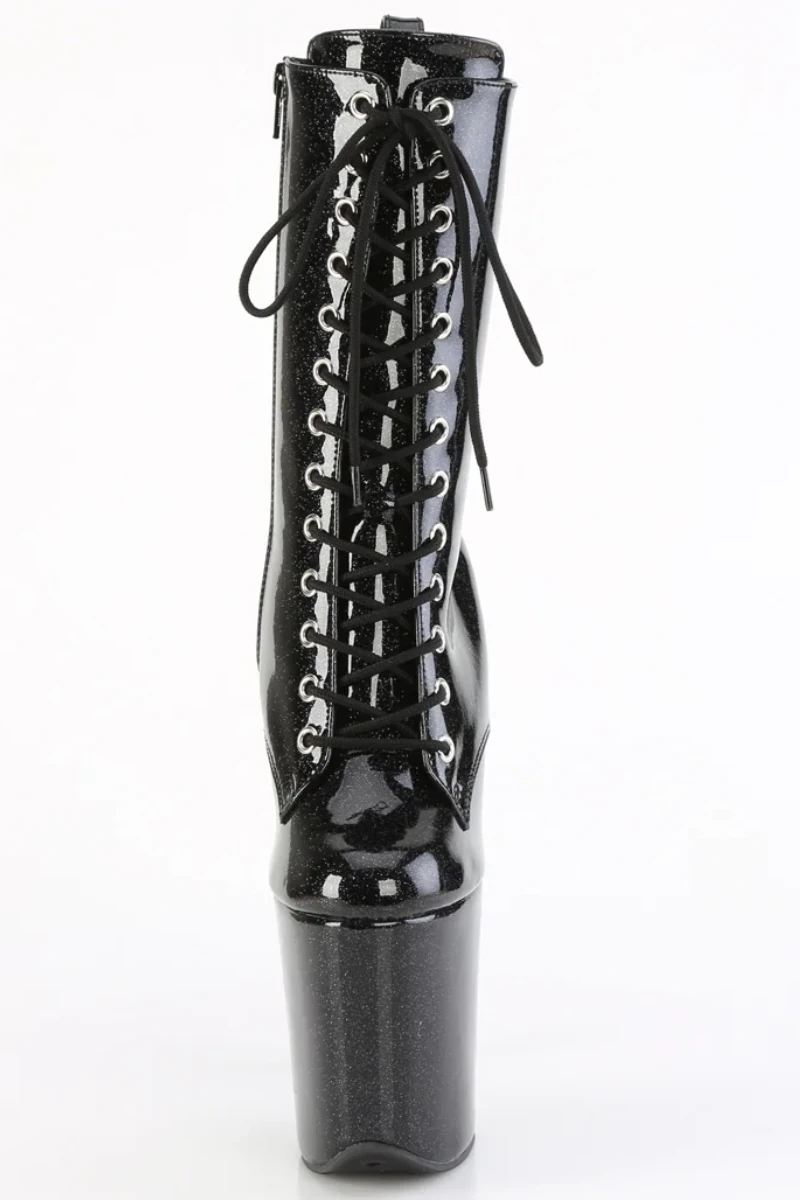 - Black Glitter Platform | Lace-Up Front Ankle Boot | Inside Zip Closure